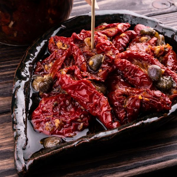 Unsere getrockneten Tomaten in Öl passen perfekt als Antipasti zu milden Käsesorten wie Mozzarella, Feta, Suluguni oder Adygei-Käse. Besonders köstlich mit frisch gegrilltem Baguette. Sie eignen sich außerdem hervorragend für Pizza, Pasteten, Omeletts, Fleischgerichte und Salate.